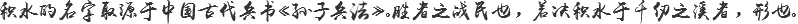 這句話的意思為【勝利者的戰(zhàn)斗如同裝的慢慢的水(即積水(sekisui))急墜入深深的谷底,以強勢盡頭,一鼓作氣】。